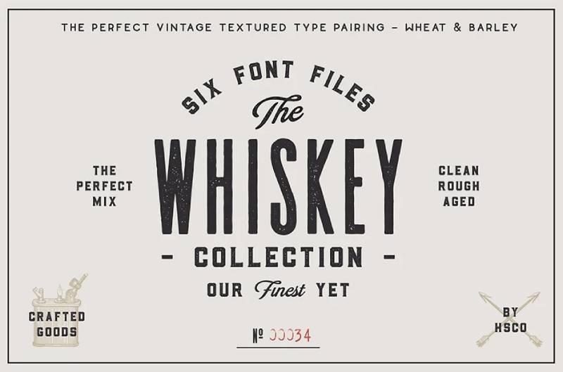 Immerse in the Prohibitionist era’s essence with this vintage font set, echoing the aesthetics of vintage whiskey labels.