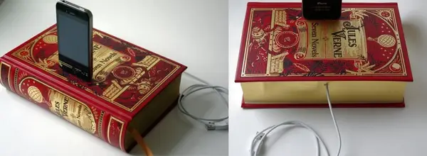 Don’t let wires go everywhere and clean-up that mess visually with a book-looking charging dock.