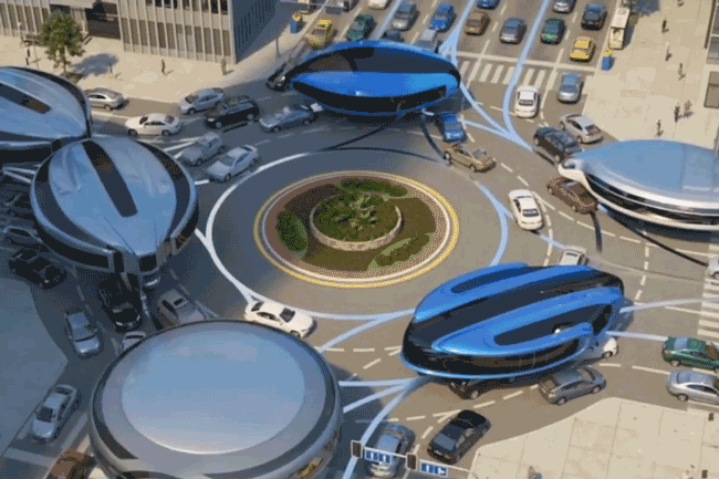 The system looks futuristic and the previews pretty cool, with several levels that help increasing the fluidity, but it doesn’t seem very realistic. In fact, how would they secure these rails so they don’t smash the cars or people crossing? How do they get people in and out of the buses quickly at that height? Not even mentionning the physics of holding such a heavy structure with two simple poles.