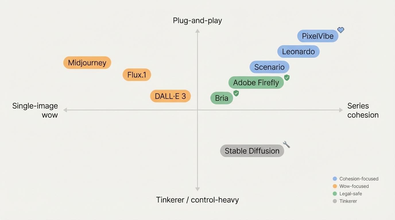 In short, choose the tool that removes your biggest obstacle. Want set-and-forget consistency? Train Leonardo or Scenario. Crave visual wow? Midjourney or Flux. Tight budget and high curiosity? Load up Stable Diffusion.