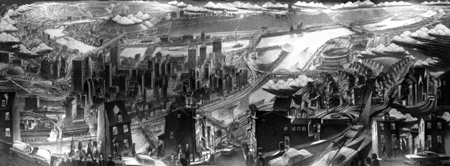 Doug Cooper is an american artist who focuses on large panoramic murals of cities in the USA and abroad. In this post you can discover some of his Pittsburgh series, but check out his website to see more work.