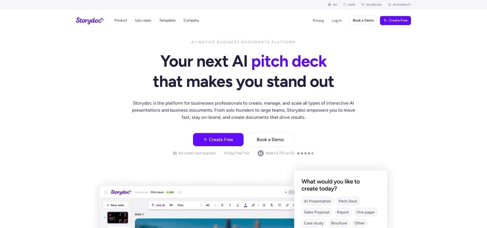 Pricing is quote-based, but startups can often land a discounted plan by asking. Choose Storydoc when you want your pitch to feel closer to a product demo than a slideshow.