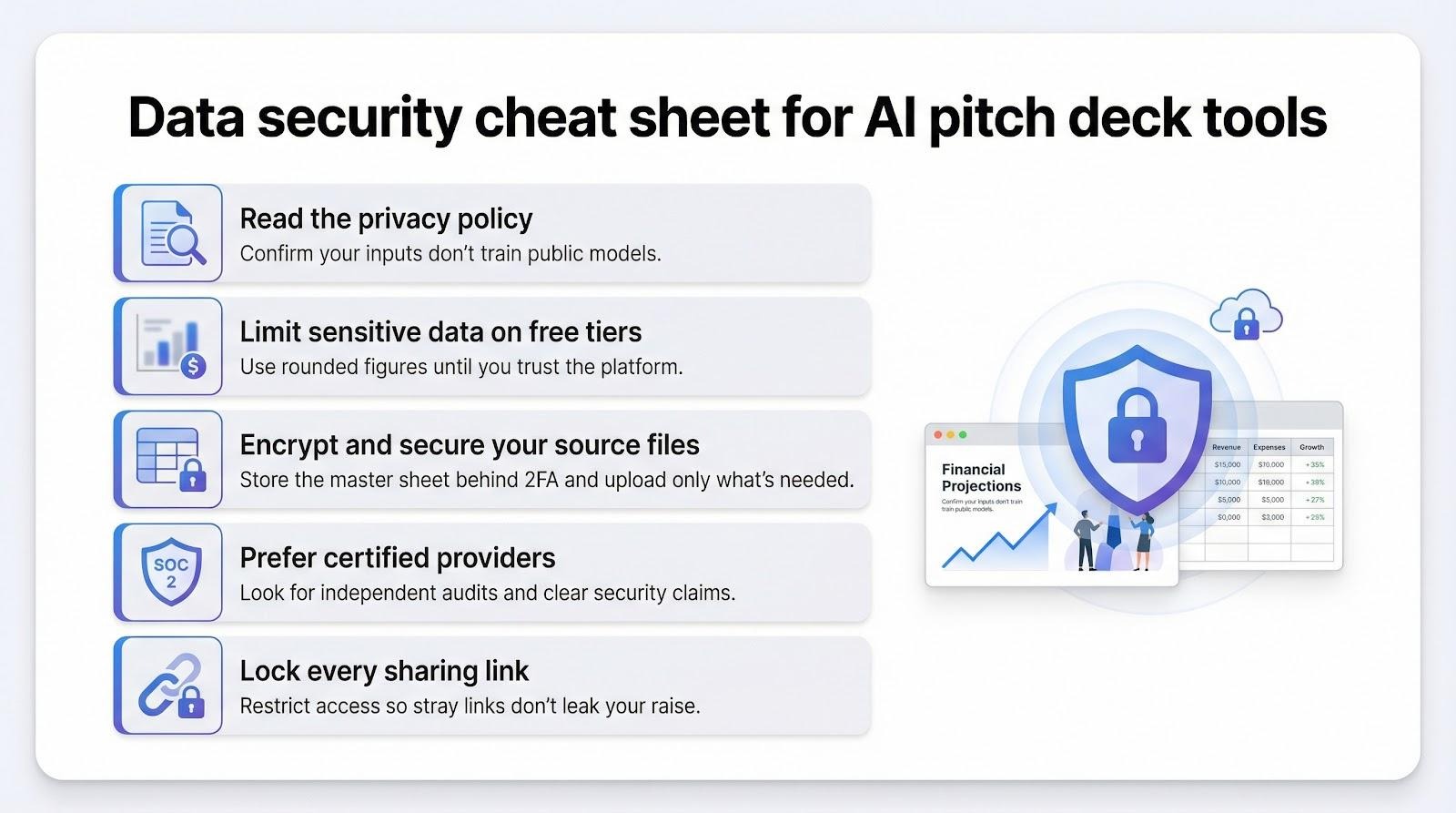 Every AI pitch deck tool runs in the cloud, so your confidential metrics travel to someone else’s server. That is safe only when you follow a few basic rules.