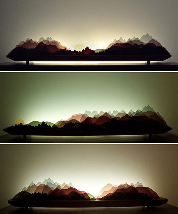 Lucie Boucher and Bernie Huebner are the co-founders of Stone Ridge Glass, a company specialized in glass art. They do commission work, but their most famous product are by far the glasscapes, some cool landscapes made of layers of glass that can be moved to change the view.