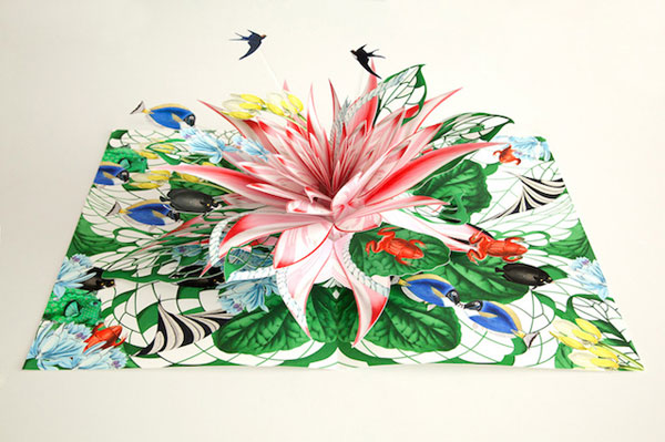 Bozka is an artist and illustrator from Warsaw, Poland. She creates stunning illustrated pop-up books. The level of details and explosion of colors is the first thing that jump at you, but each artwork does more than that by telling you a story. Everything is hand-crafted, some very technical work.