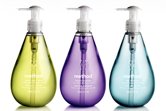 Method’s cleaning products are stocked floor-to-ceiling with bright, distinctive bottles. Their approach to regulatory text is systematic: use color and hierarchy to differentiate information types. Allergen statements are consistently placed and color-coded, warnings use high-contrast panels that feel intentional rather than alarming, and the overall effect is clean compliance that doesn’t scream “warning label.”