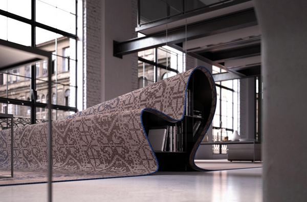 Alessandro Isola, a talented Italian designer, has created a quite unusual carpet-sofa. Playing with carpet ridges, which everybody normally despises, he turned it into a seating system that is included into the carpet itself. Designer’s website: http://www.alessandroisola.com