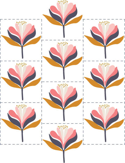 The full drop repeat is the most straightforward: artwork repeats along horizontal and vertical lines, forming a perfect square or rectangle. Think of a basic checkerboard. It’s simple to create and widely used, particularly in home decor, wallpaper, and paper products where evenness and symmetry are valued .