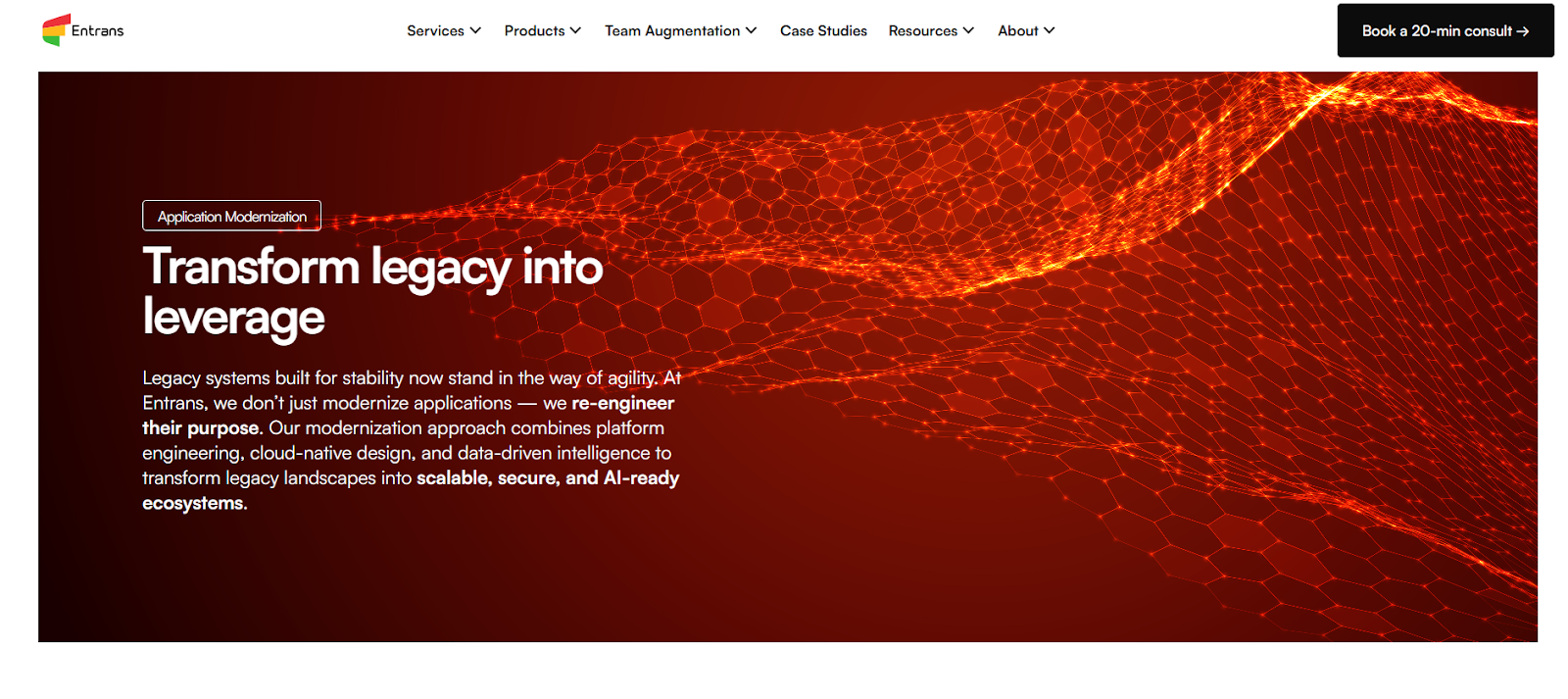 The goal at Entrans is business-driven modernization. Their approach starts with a thorough assessment of the legacy application, its accumulated technical debt, and cloud readiness. They provide several key services to execute this:
